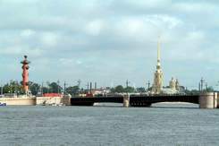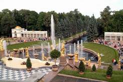Sarà per quella luce così intensa, tanto diversa da quella che per noi è più consueta: si sente la vicinanza di quelle terre del nord che, in un certo senso, proprio da qui prendono avvio. E questa luce nei mesi estivi, all’ora del tramonto, diviene ancora più suggestiva, ammantando l’intera città – il suo stesso profilo architettonico – di un’atmosfera davvero indimenticabile… Questa era una delle tre mete nelle quali, almeno idealmente, si poteva suddividere la parte “turistica” del nostro itinerario, insieme a Mosca e alla visita alle principali città dell’Anello d’Oro: e questa è una meta che - almeno secondo la nostra valutazione -, dovrebbe essere inserita in ogni viaggio in terra russa. Come detto non sono agevoli gli spostamenti: per fortuna tutte le isole che compongono la città sono collegate da ponti (molti dei quali sono mobili) e così non ci si rende neppure conto che si sta andando da un’isola ad un’altra… La città, proprio nel 2003, ha festeggiato i trecento anni dalla sua fondazione: per noi italiani che incontriamo spesso borghi e centri molto più “antichi” tre secoli non sono poi decisamente molti: è da tenere presente però come, nell’architettura russa, l’uso del legno al posto del mattone e della pietra per edificare le abitazioni, abbia finito con il renderle meno longeve proprio a causa degli incendi, delle distruzioni belliche, delle stesse condizioni atmosferiche che molto incidono su questo materiale. E proprio il fuoco ha sempre rappresentato una minaccia potenziale assai pericolosa: ecco perché in molti centri la “torretta” dei vigili del fuoco è sempre posta in posizione molto centrale e assai “venerata” dagli abitanti locali… Questa metropoli di circa cinque milioni di abitanti presenta ritmi di vita assai diversi dalla Russia che fino ad oggi abbiamo percorso, cercato di conoscere e di raccontarvi: questa, naturalmente insieme a Mosca, è l’unica “vera” città europea, così come noi le intendiamo, con un suo tessuto sociale e culturale di notevole spessore. Seduti ad uno dei tavolini dei suoi tanti locali, osservando il traffico convulso ad ogni ora del giorno e il frettoloso andirivieni di pedoni, sarebbe del tutto impossibile riconoscere in quest’istantanea elementi diversi da quelli propri delle città occidentali. E questo vale anche per i negozi e i supermercati: purtroppo, almeno per noi, qui sono letteralmente spariti quelli “autentici”, che hanno uno scopo solo nell’economia dell’abitante locale, che offrono in vendita oggetti e beni tipici di queste tradizioni: qui, come a Mosca, imperano le multinazionali che affollano gli angoli più caratteristici della città (e quindi anche quelli più frequentati) con le loro boutique, che espongono la stessa mercanzia “di lusso” che possiamo trovare negli show-room di Milano, Roma, Francoforte, Parigi, ecc., ecc. Tale situazione, oltre a non interessare più di tanto il turista (che certo non viene in Russia a rifarsi il guardaroba di “firme” occidentali…), risulta piuttosto dispregiativo verso la popolazione locale che, purtroppo, ha tenori di vita – e stipendi – assolutamente non correlabili ai valori economici dell’occidente: e grande deve essere la frustrazione di chi deve vivere, lavorando, con circa venticinque euro di stipendio mensile (è quello medio), quando una camicia “griffata” costa anche più di cento euro! Per non parlare dei televisori al plasma dell’ultima generazione, dei computer, delle stesse automobili d’importazione. A questo riguardo abbiamo condotto una piccole indagine conoscitiva, tanto per comprendere meglio la realtà economica che sottosta ad un mercato tanto grande quanto quello dell’auto: il costo finale, in rubli, per un fuoristrada russo a quattro ruote motrici è di poco meno di cinquemila euro, mentre un’analogo giapponese costa quattro volte tanto… Tale situazione presenta inevitabilmente una serie di ripercussioni sulle stesse abitudini di vita: come già detto il parco di veicoli circolanti è davvero datato, con il mantenimento in funzione di auto che non rispecchiano assolutamente le benché minime condizioni di sicurezza. Qui, infatti, si ritrovano modelli ormai dimenticati che, in un qualche modo, riescono ancora a svolgere il proprio lavoro anche su queste strade tanto dissestate. Anzi questo delle strade, così come ci è stato spiegato, è l’altro irrisolto problema che tiene in vita tante macchine “vecchie”: qui una Ferrari non la si può vedere circolare non perché non vi sia qualcuno che se la possa permettere, ma semplicemente perché il suo raffinato "fondo piatto ribassato" andrebbe in frantumi in pochi chilometri a causa degli avvallamenti della strada! Per quanto riguarda i monumenti "imperdibili" di questa città e dei suoi dintorni, ci siamo concentrati soprattutto su due di essi: l'Hermitage, che è uno dei palazzi-museo più grandi del mondo e la tenuta di "Peterhoff", residenza estiva famosa per i suoi giochi di acqua.